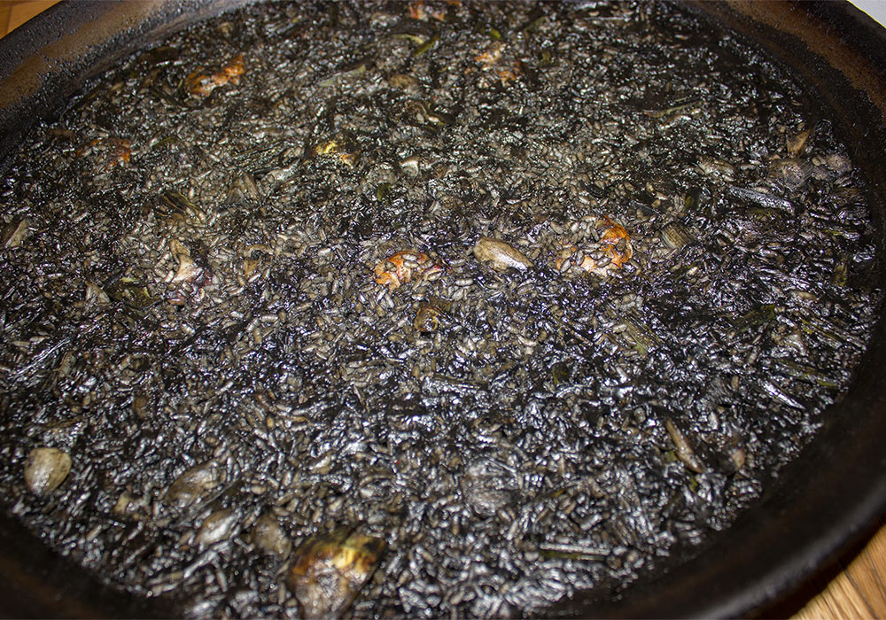 - Arroz negro (sepionet, gambas, rape, alcachofas y ajos tiernos)