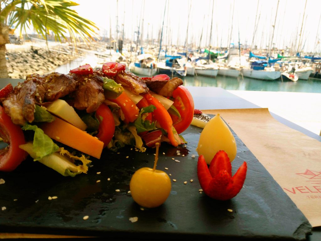 - Ensalada tibia de magret de pato, fresas, aguacate y vinagreta de miel y mostaza dulce