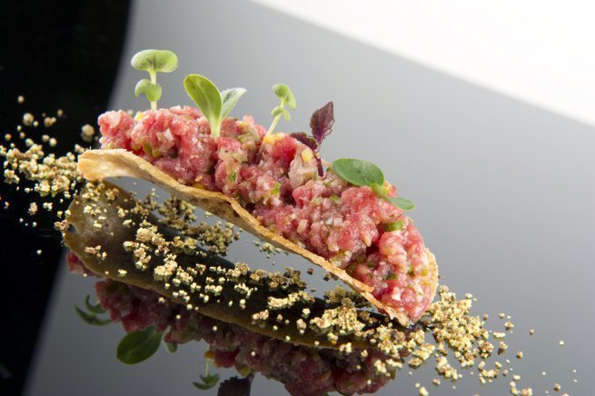- Taco de buey con escamas de sal y crema de Idiazabal
